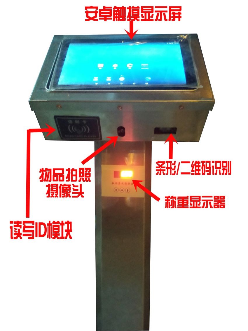 4G網(wǎng)絡(luò)WIFI安卓Android7.1微軟Microsoft系統(tǒng)APK電子稱exe軟件秤APP二次開發(fā)電子磅在電子秤的基礎(chǔ)上加裝多種選配件組裝成,由10.1寸觸膜顯示器+充存電+攝像頭+掃條碼/二維碼+RFID讀寫裝置等